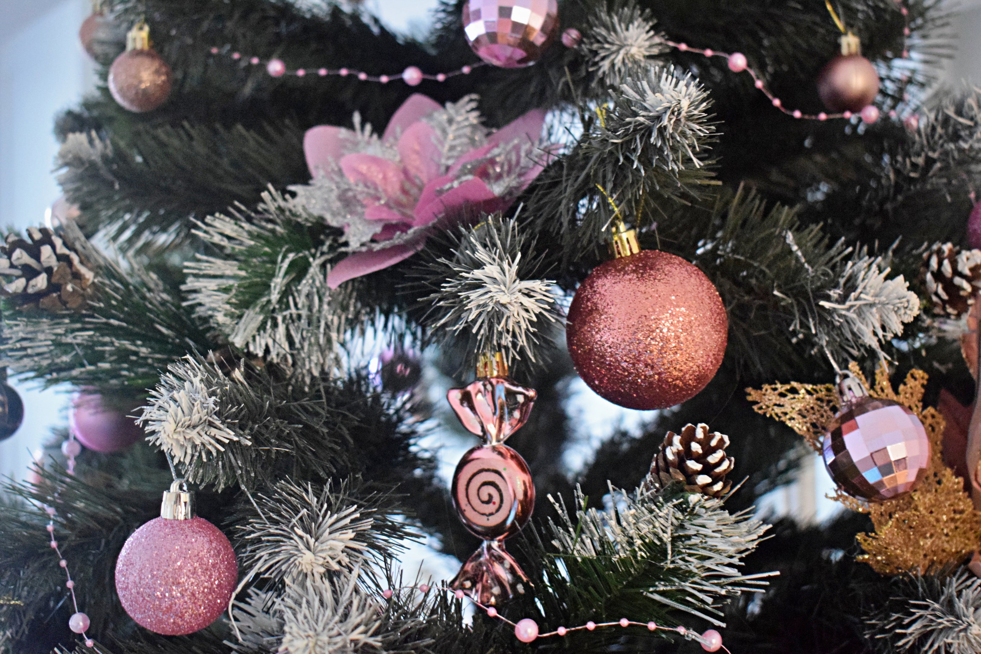 Un brad clasic rosu cu auriu care te aduce aproape de magia Craciunului.