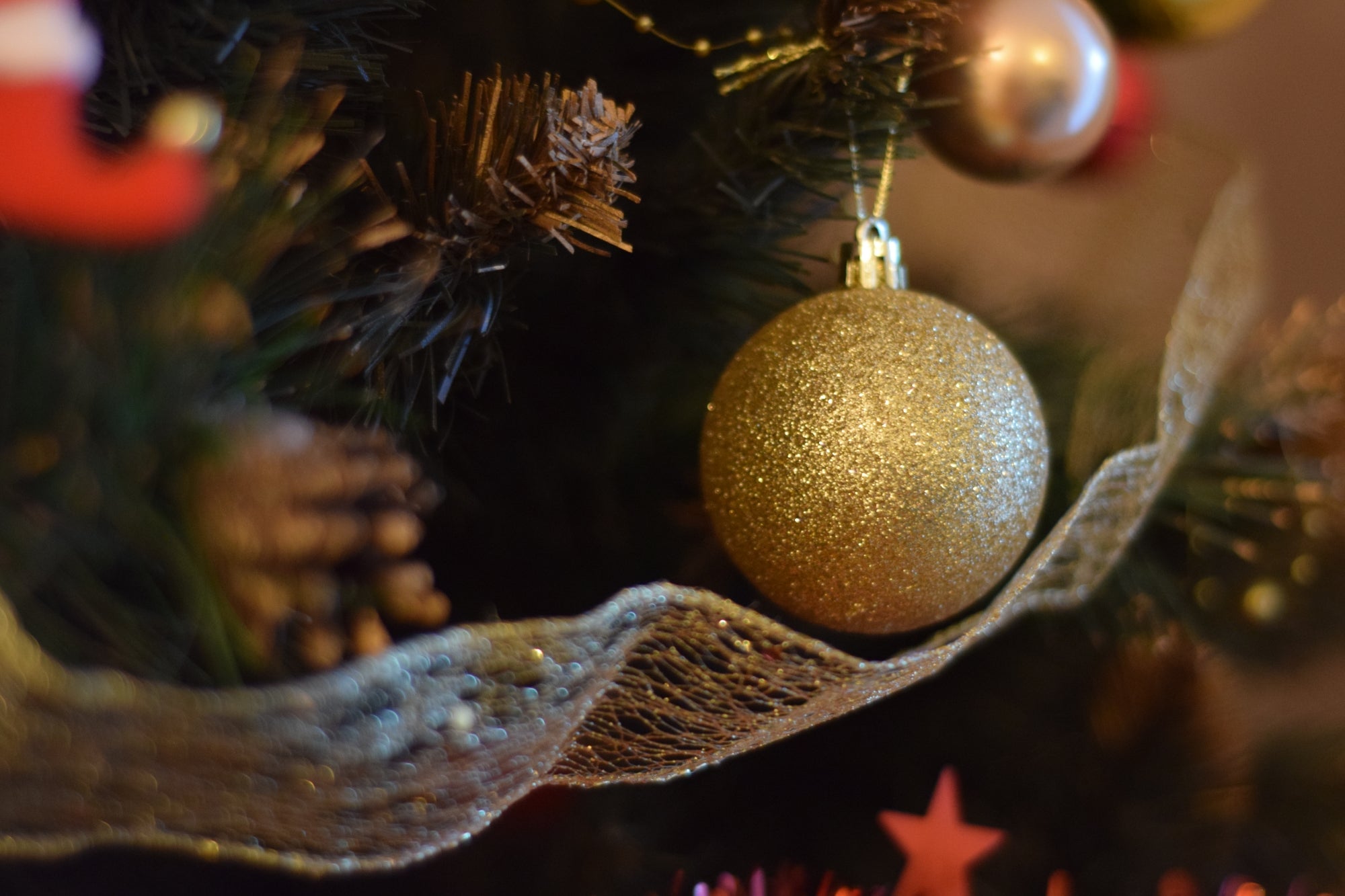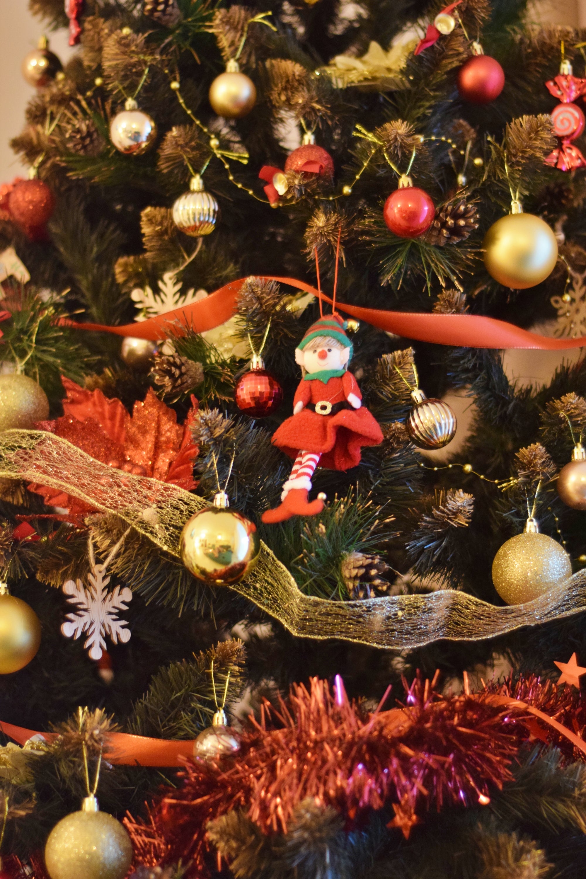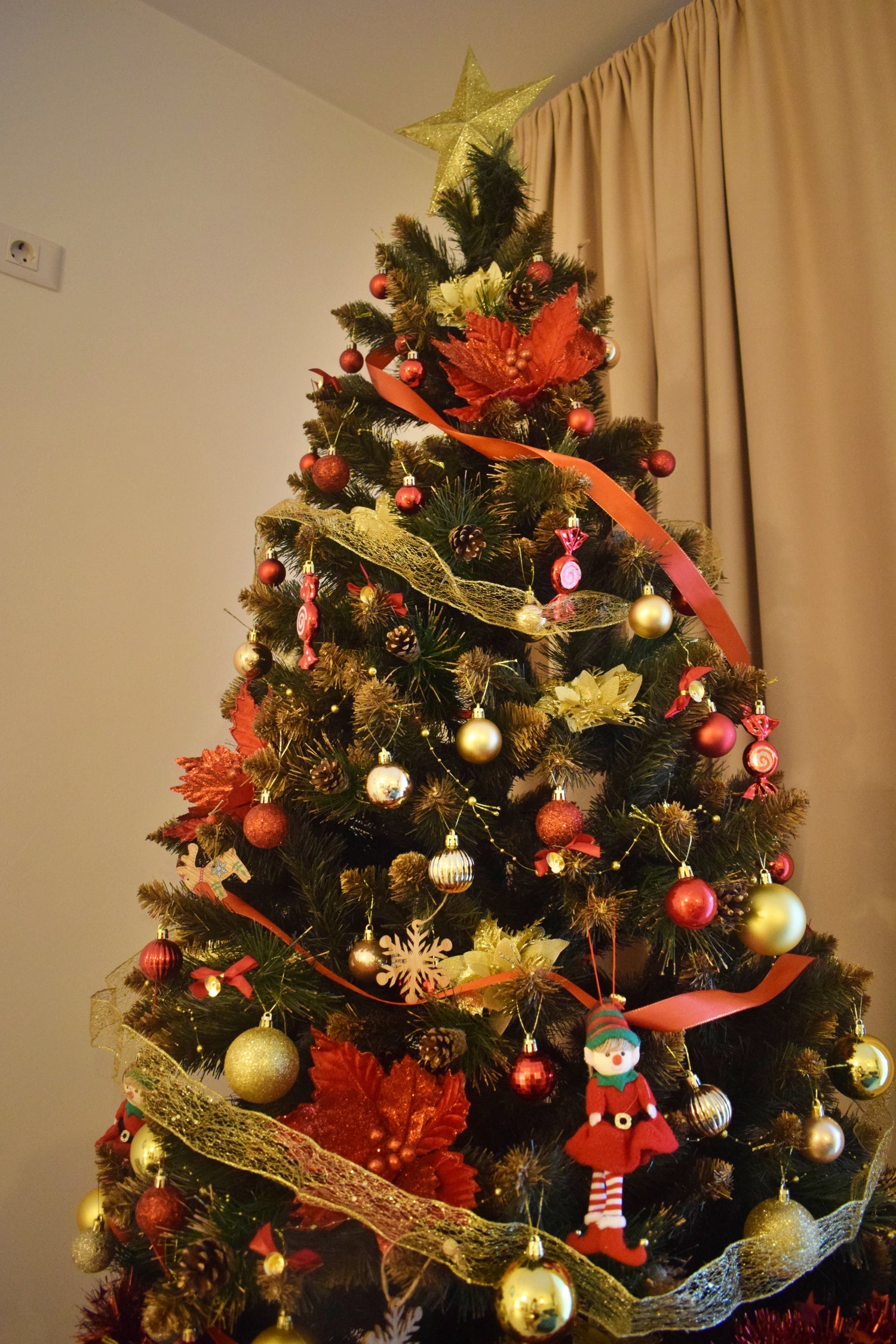 Un brad clasic rosu cu auriu care te aduce aproape de magia Craciunului.